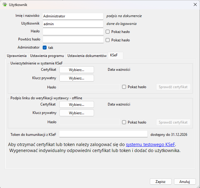 Aby utworzyć certyfikat w KSeF potrzebny do komunikacji programu z KSeF należy