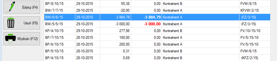 Każdy dokument wpłaty i wypłaty można wydrukować.