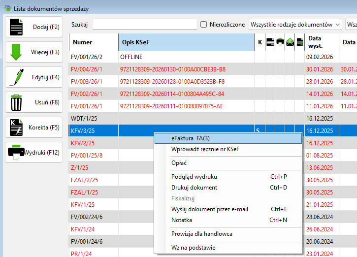 - Pamiętaj, że faktury z zapisanym nr KSeF nie mogą być już edytowane.