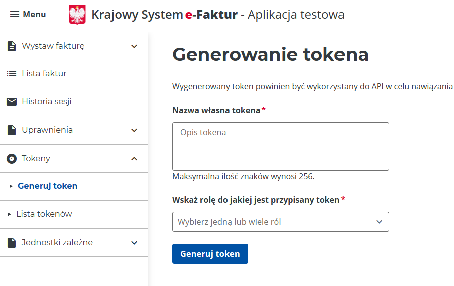 Po wypełnieniu formularza kliknij przycisk Generuj token aby wygenerować token.