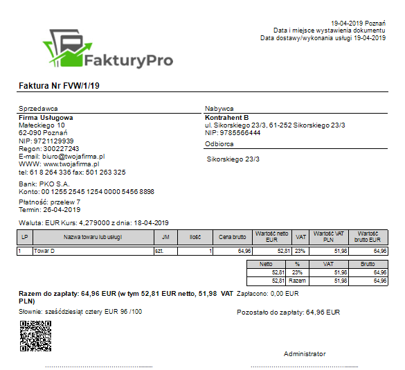 Dalej postępujemy analogicznie jak przy dodawaniu Faktury.