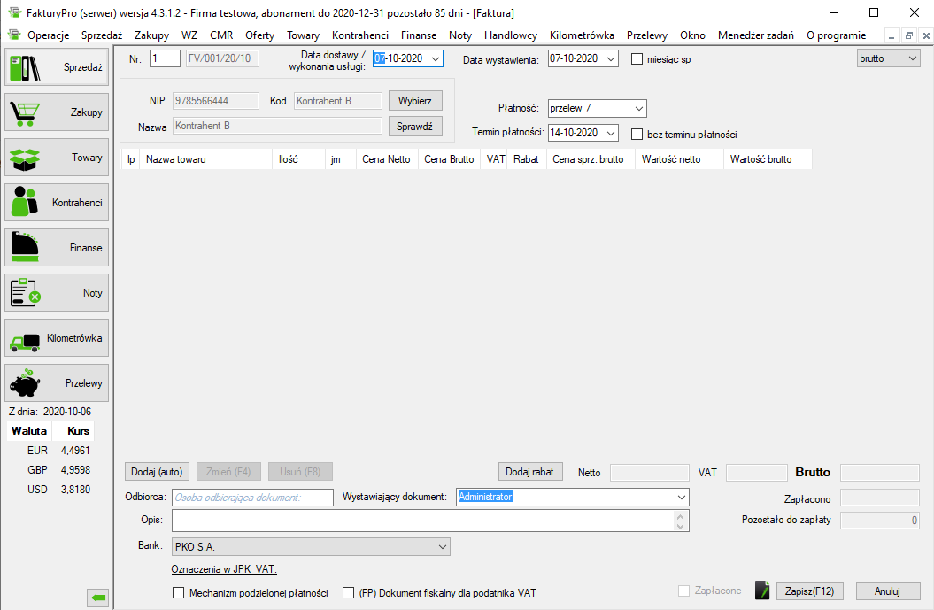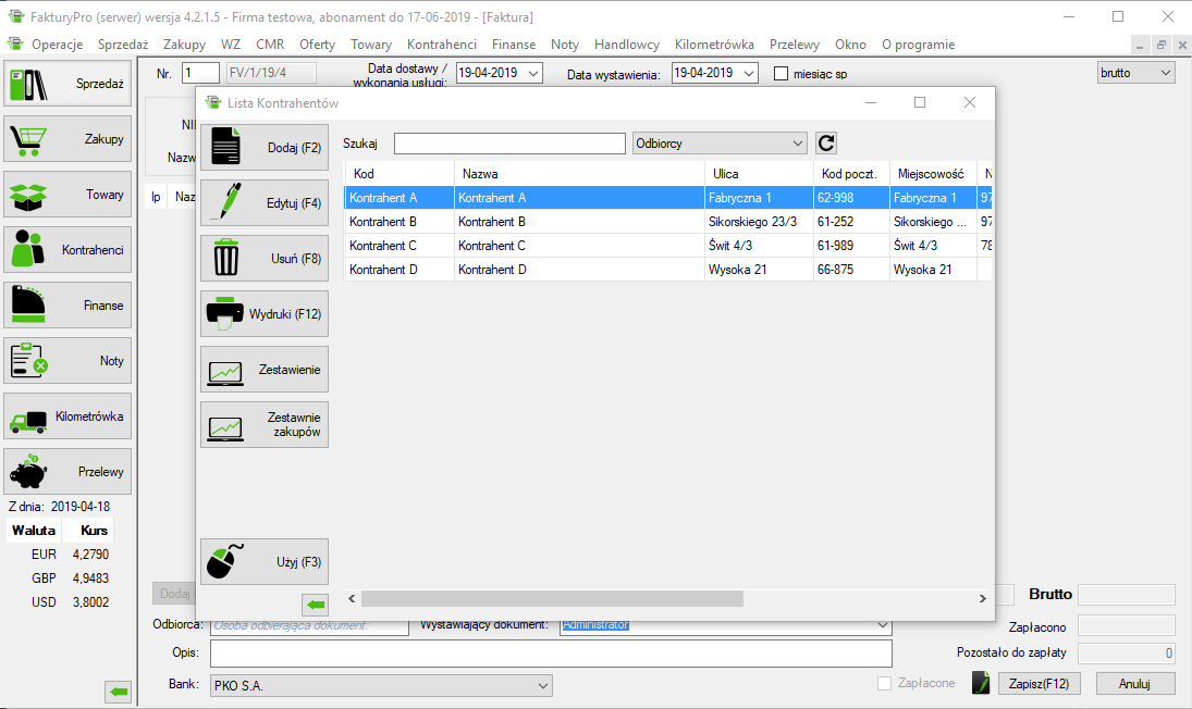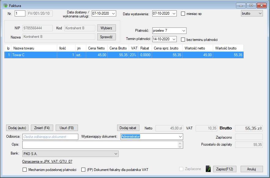 Po wybraniu kontrahenta na dokumencie pojawią się jego dane.
