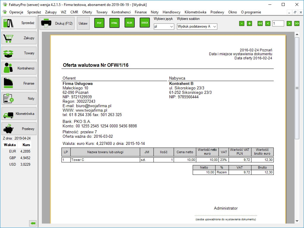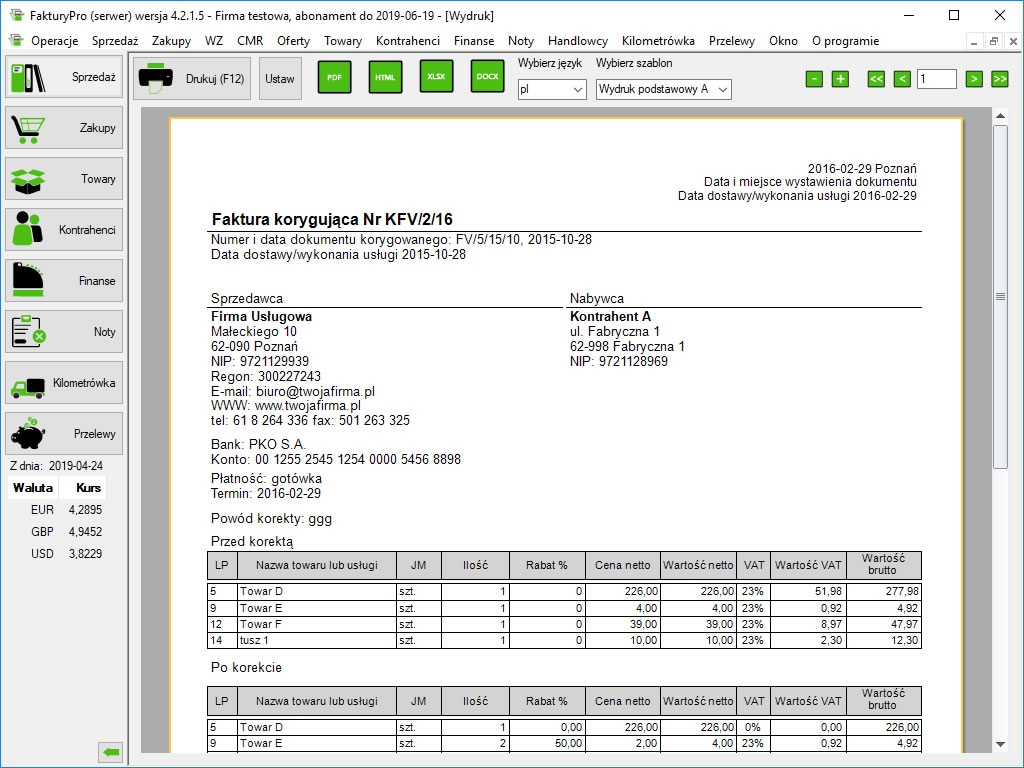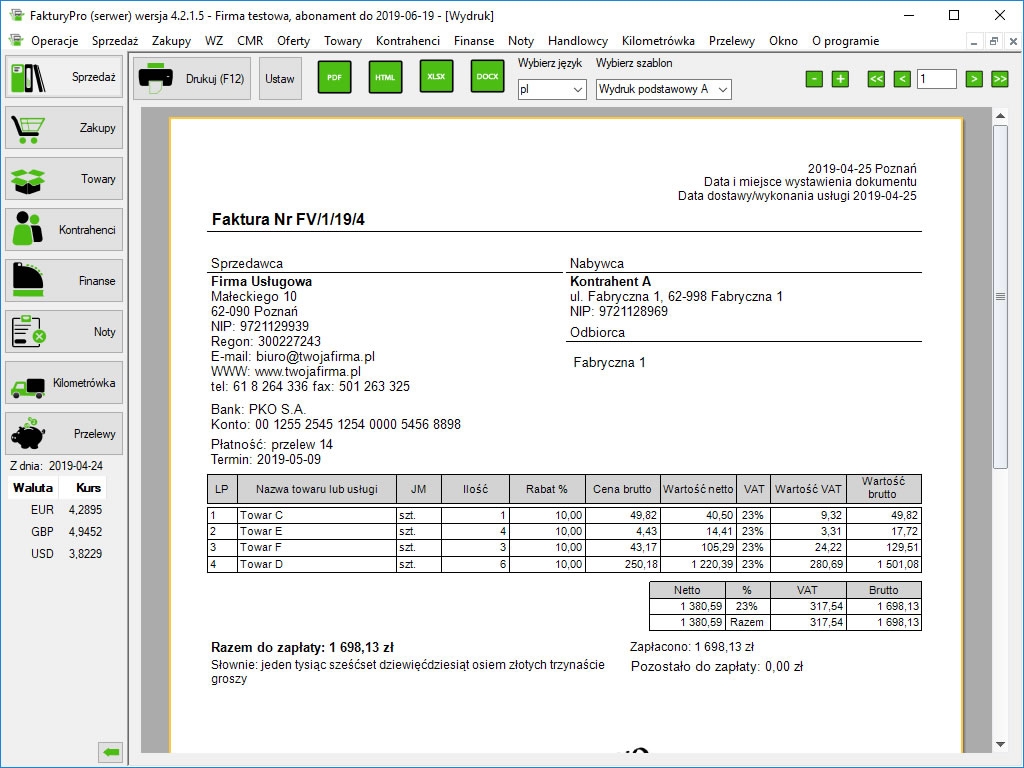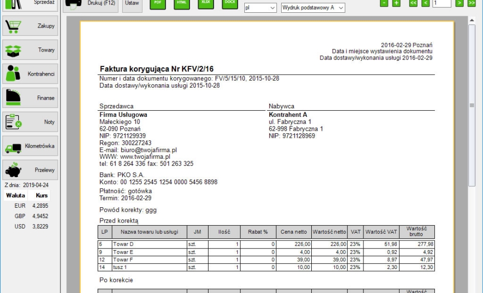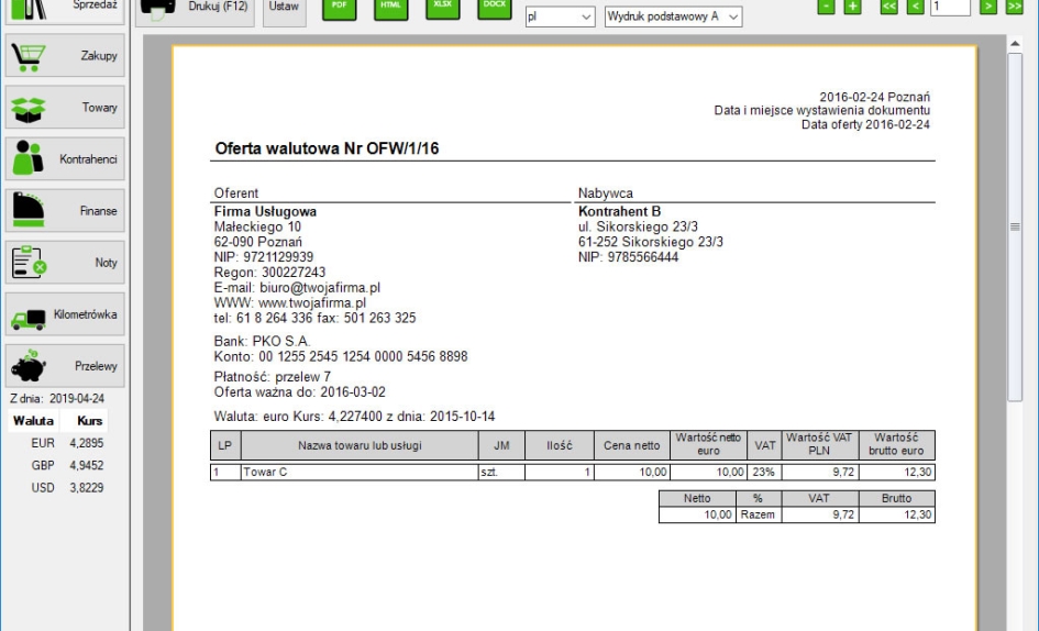 Wersja darmowa pozwala na wystawienie do 5 dowolnych dokumentów miesięcznie