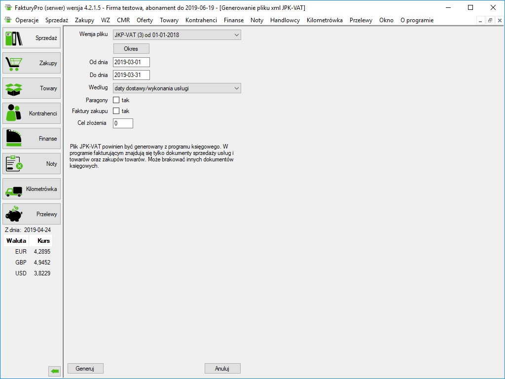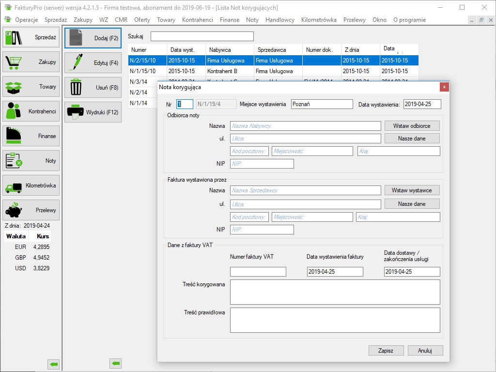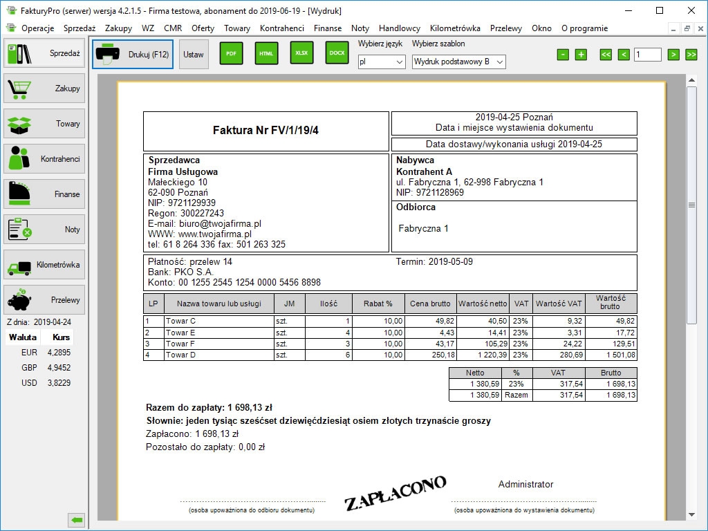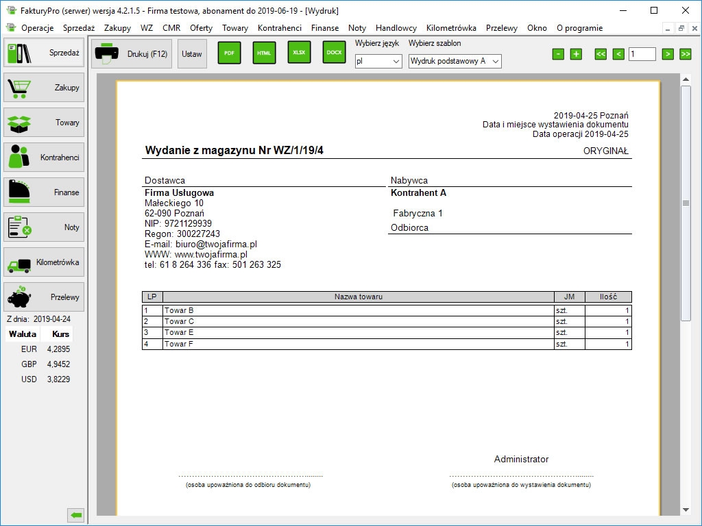 Wersja darmowa pozwala na wystawienie do 5 dowolnych dokumentów miesięcznie