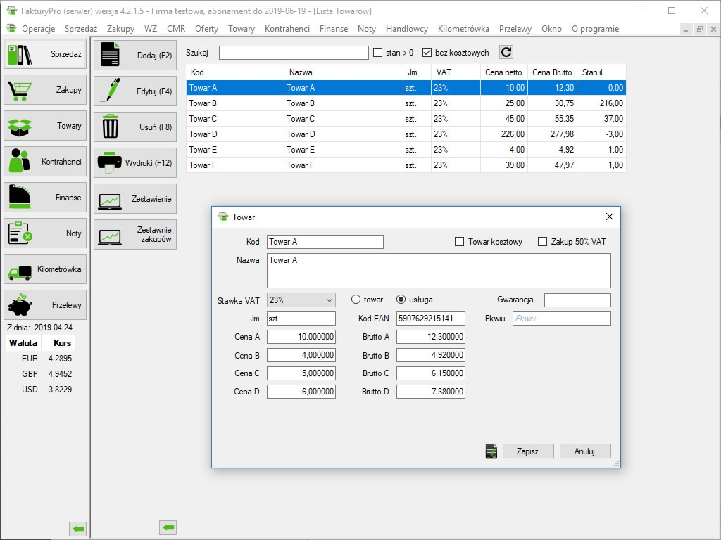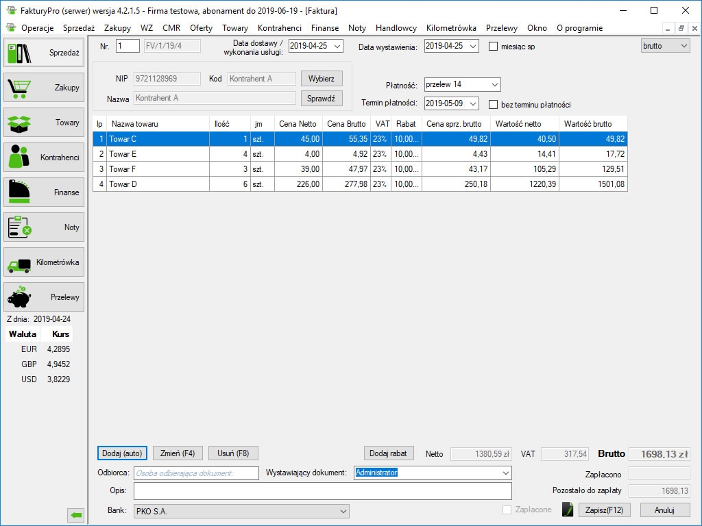 FakturyPro jest prostym programem do wystawiania faktur, który dzięki swojej konstrukcji pozwoli w kilka minut zacząć pracę nawet mniej obeznanemu użytkownikowi. Program FakturyPro jest skierowany do mikro i małych przedsiębiorstw.