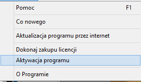 W celu wykonania aktywacji wybieramy z menu O programie a następnie Aktywacja programu