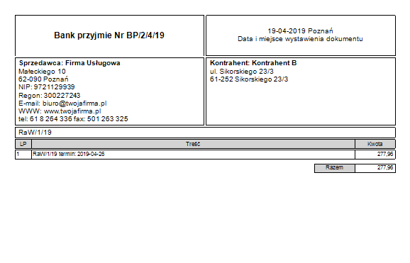 Każdy dokument wpłaty i wypłaty można wydrukować.