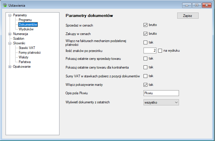 Parametry dokumentów