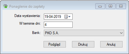 Następnie wybieramy datę wystawienia dokumentu i określamy ilość dni terminu do zapłaty zaległości oraz na jaki rachunek należy wpłacić zaległości.