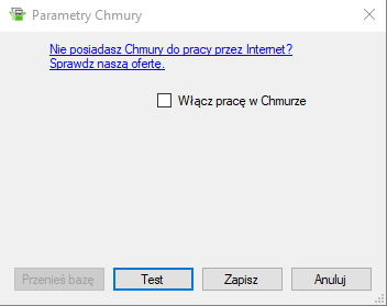 Włączyć pracę w Chmurze i zapisać.