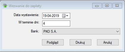 Następnie wybieramy datę wystawienia dokumentu i określamy ilość dni terminu do zapłaty zaległości oraz na jaki rachunek należy wpłacić zaległości.