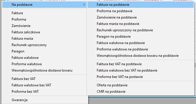 Wystawianie dokumentu na podstawie