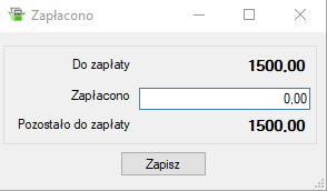Jeżeli Kwota wpłacona będzie większa od kwoty Do zapłaty zostanie zapisana wpłata tylko do wysokości kwoty do zapłaty. Program pokaże informacje ile jest reszty do wydania.